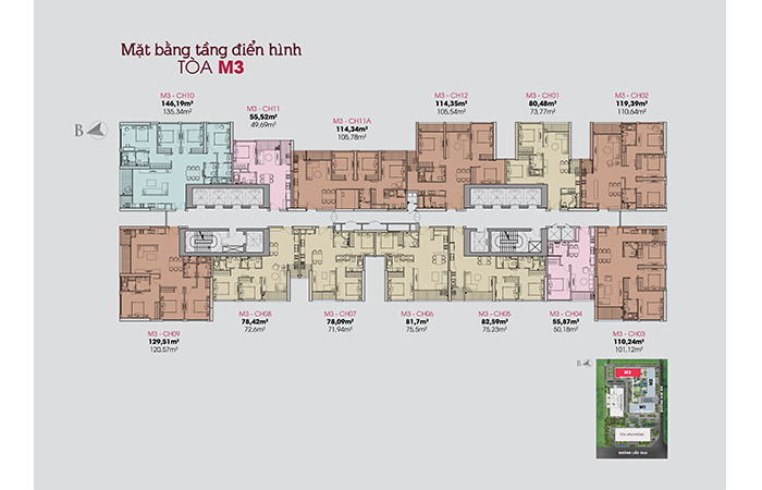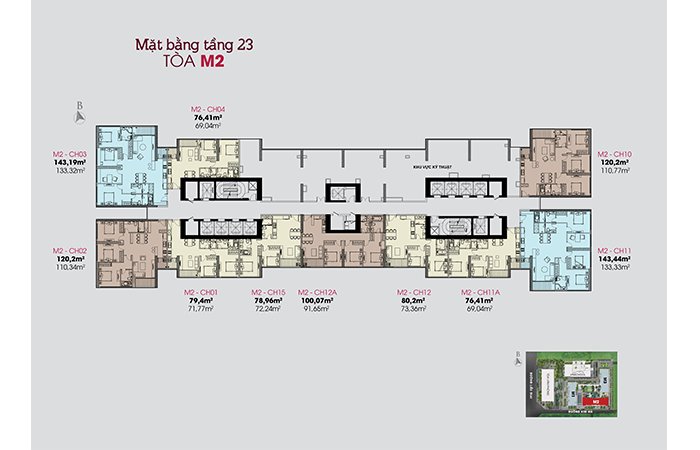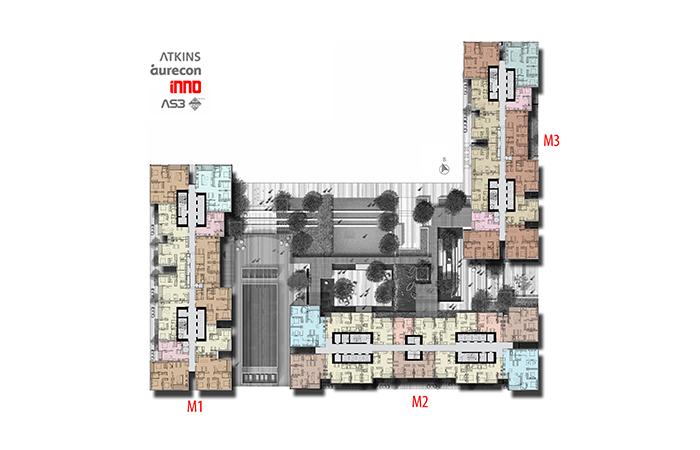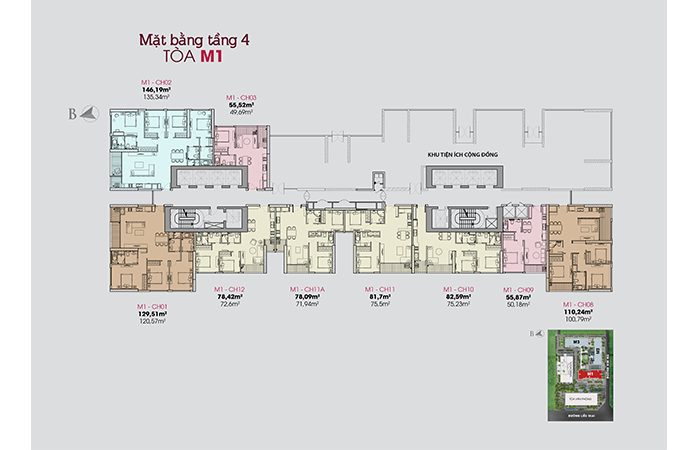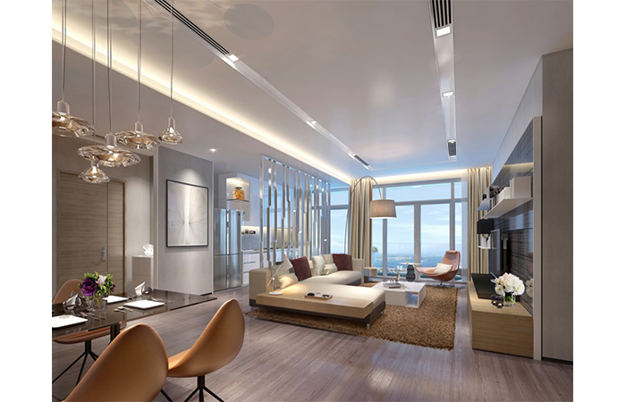 - Khu vực sảnh thương mại tiếp cận tòa nhà theo hướng đường Kim Mã, từ vị trí sảnh thương mại, người sử dụng có thể tiếp cận không gian thương mại, và cũng có thể sang sảnh chung cư. Khu vực sảnh chung cư được bố trí thành 3 sảnh tương ứng với 3 khối nhà ở 3 mặt của khối hỗn hợp.