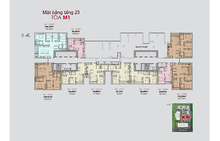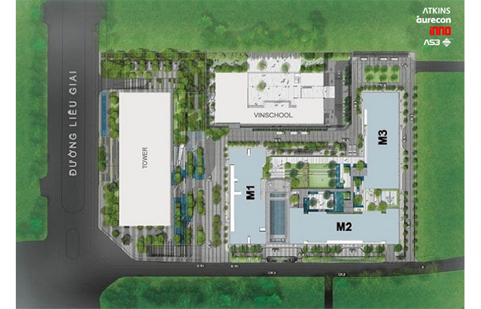- Khối trường học được bố trí ở phía Bắc khu đất giáp với Đại sứ quán Nhật, hướng tiếp cận khu trường học bằng các đường giao thông nội bộ trong dự án.