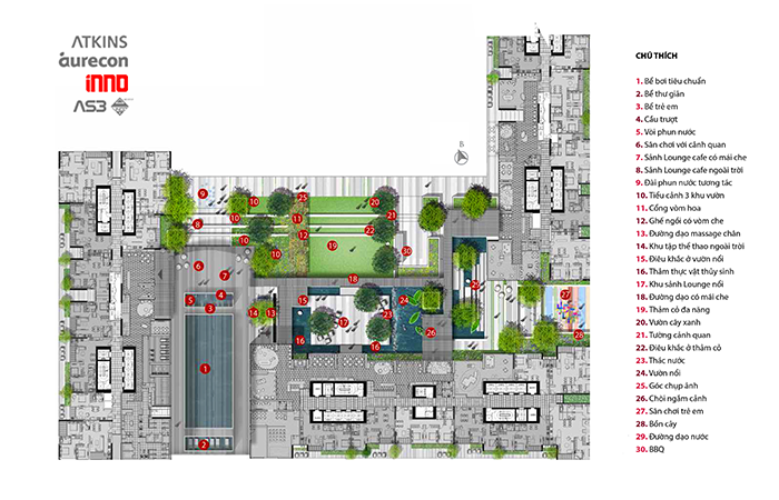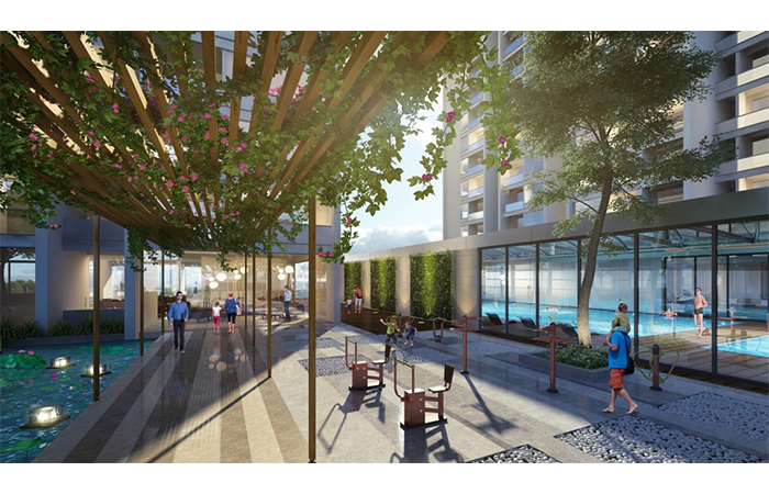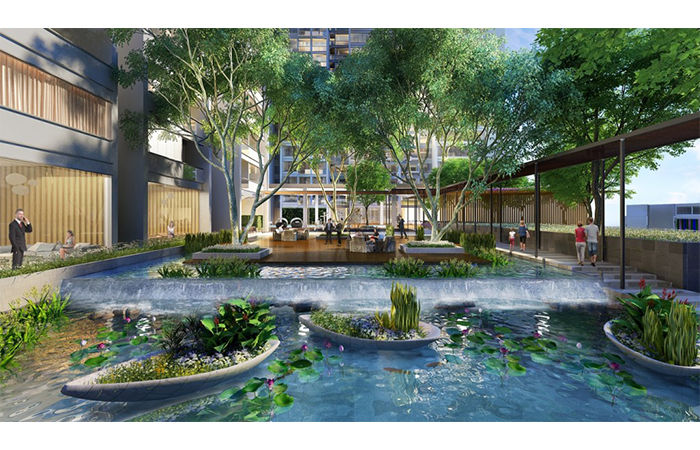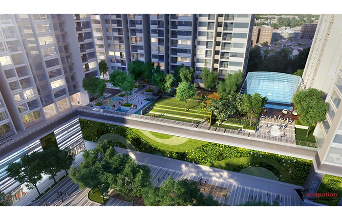 Sự kết hợp cây xanh, thảm cỏ là phương thức ngăn chia mềm mại và gần gũi của công trình với không gian xung quanh, đồng thời tạo cảnh quan và điểm nhấn. Các không gian xanh được kết hợp với các tiện ích đẳng cấp chuẩn 5 sao, kiến tạo phong cách sống thượng lưu cho cộng đồng cư dân thành đạt.