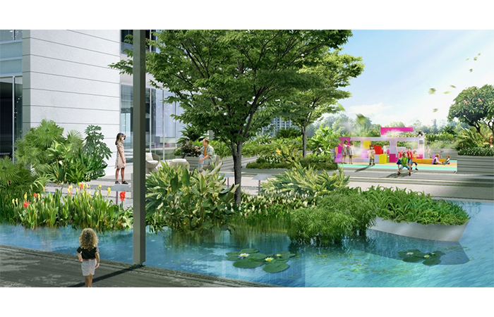Phương án thiết kế đề xuất, các khoảng không gian xanh với quy mô lớn hoặc nhỏ theo từng quy mô công trình sẽ là những điểm nhấn quan trọng về cả hình khối lẫn nội thất của công trình.